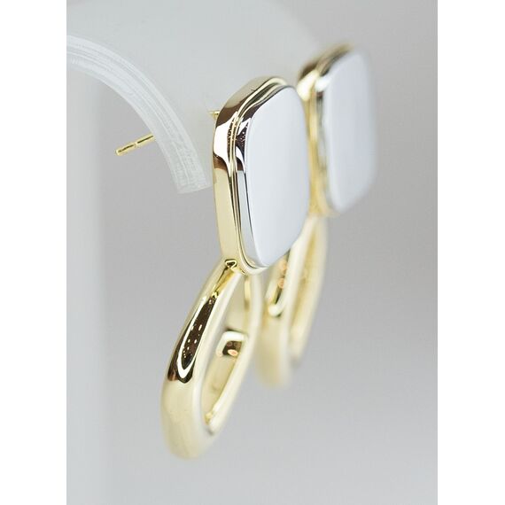 Серьги женские из гипоаллергенного ювелирного сплава желтого и серого цвета. Без вставок. Высота серег-3,0см, ширина-2,0см. Застежка- пусет.