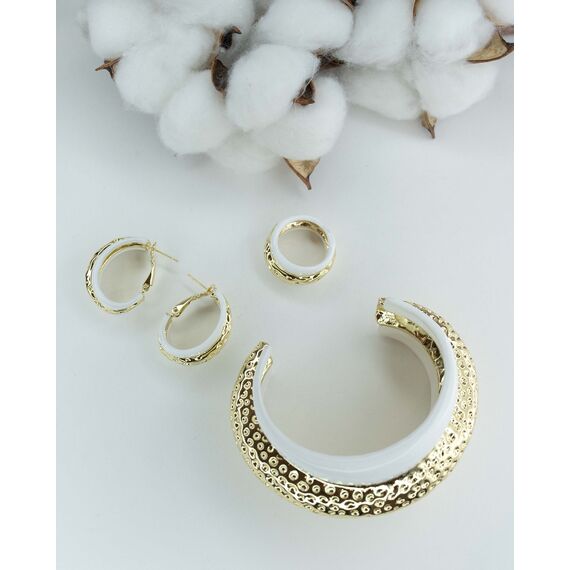 Серьги женские из гипоаллергенного ювелирного сплава желтого цвета и керамики белого цвета. Без вставок. Высота серег-- 3,0см, ширина-1,5см. Итальянский замок (штифт-1,2см и застежка- клипса).