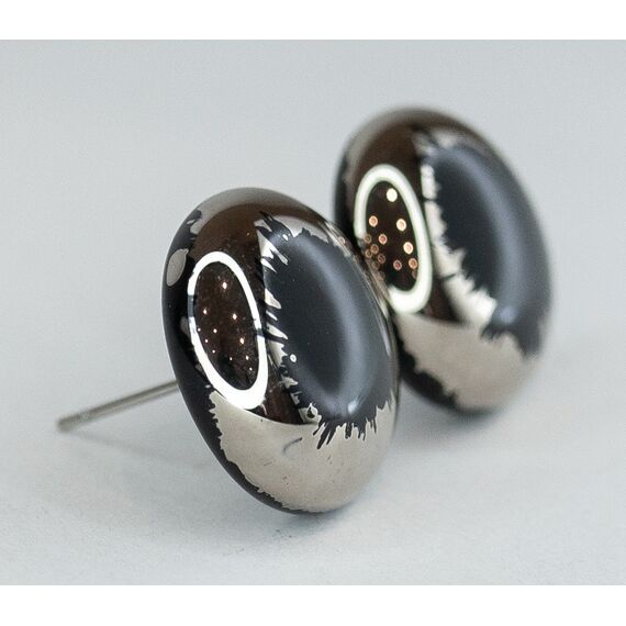 Серьги женские из муранского стекла, цвет- серый, черный и гипоаллергенного ювелирного сплава серого цвета. Высота серег-1,5см, ширина-1,5см. Застежка- пусет.