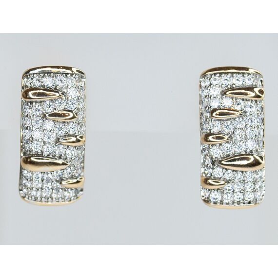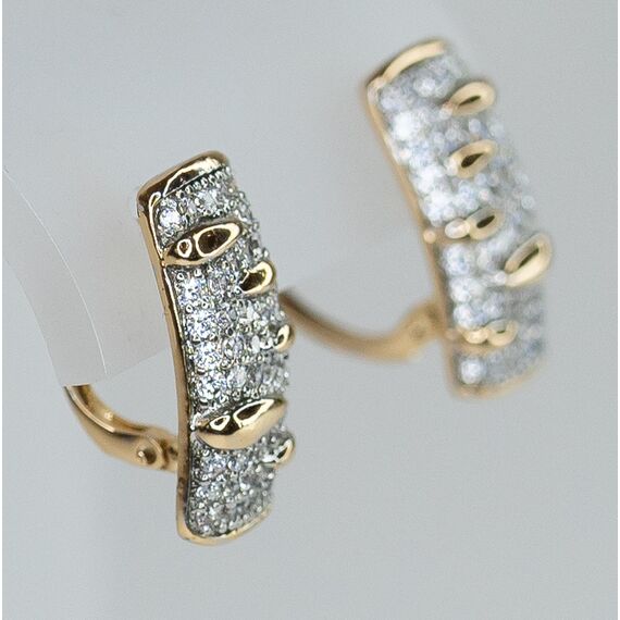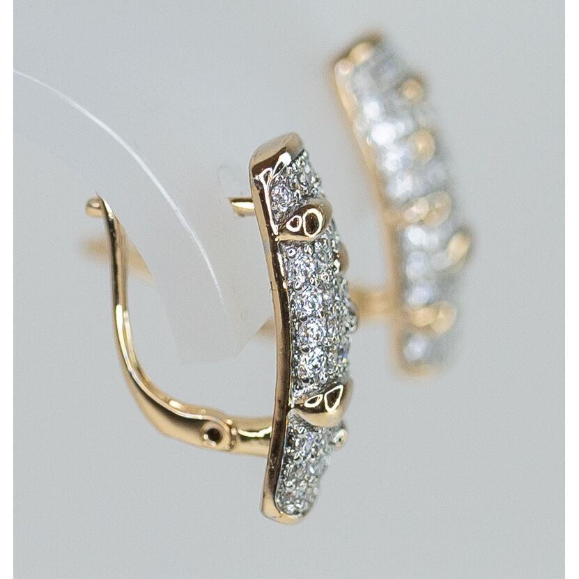 Серьги женские из гипоаллергенного ювелирного сплава золотого цвета. Вставка- циркон белого цвета. Высота серег--2,0см, ширина-1,0см. Английский замок ( штифт-1,0см).