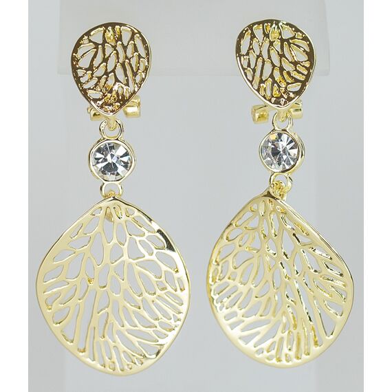 Серьги женские из гипоаллергенного ювелирного сплава желтого цвета. Вставка- ювелирное стекло белого цвета. Высота серег-5,0см, ширина-3,0см. Английский замок (штифт-1,0см).