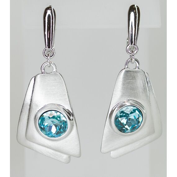 Серьги женские из гипоаллергенного ювелирного сплава серого цвета. Вставка- ювелирное стекло, цвет- голубой. Высота серег- 4,0см, ширина-2,0см. Английский замок (штифт-1,0см).