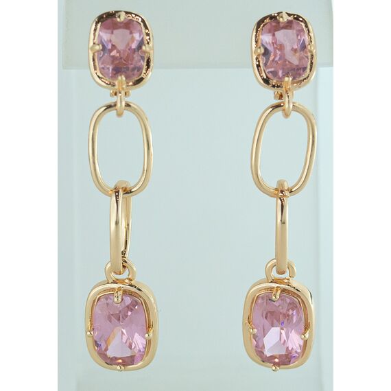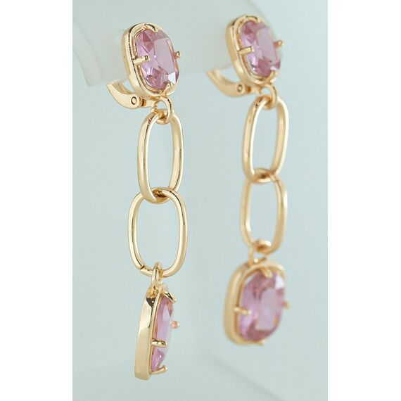 Серьги женские из гипоаллергенного ювелирного сплава желтого цвета. Вставка- кварц розового цвета. Высота серег- 5,0см, ширина-1,5см. Застежка- английская ( штифт-1,0см).