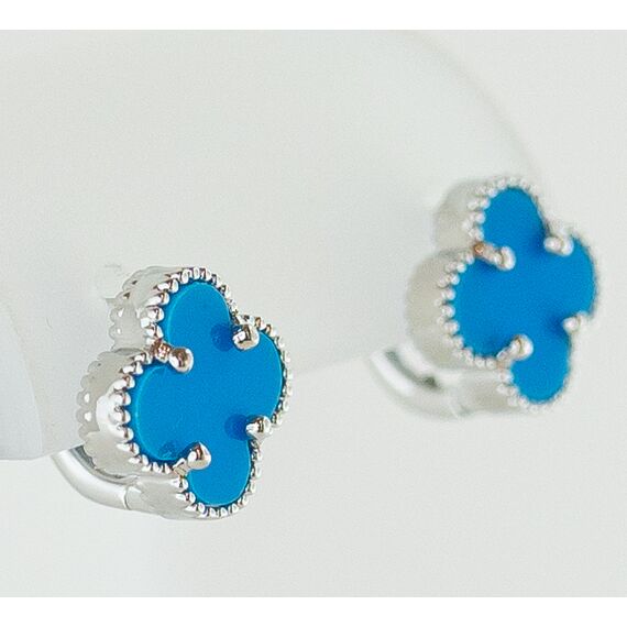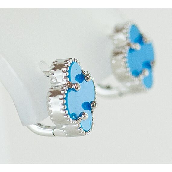 Серьги женские из гипоаллергенного ювелирного сплава серого цвета. Вставка-эпоксидная смола голубого цвета. Высота и ширина серег-1,0см. Замок-английский ( штифт-1,0см).