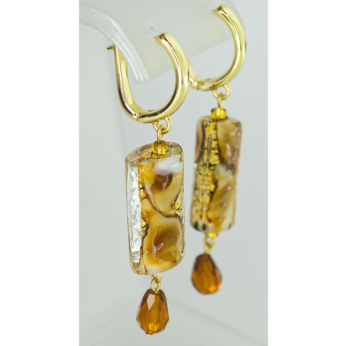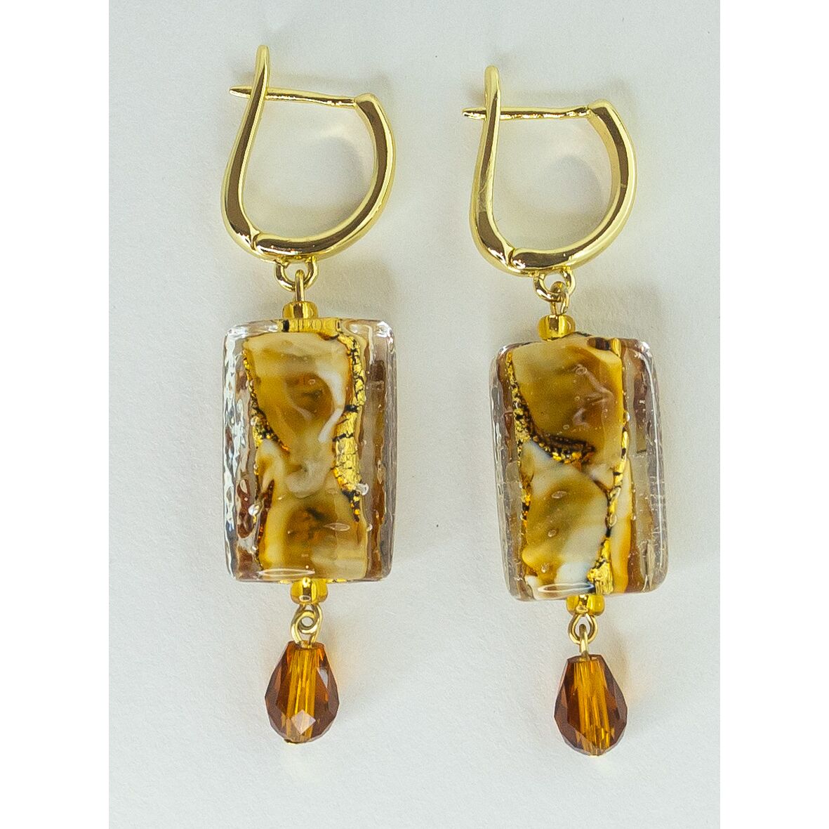 Серьги женские из гипоаллергенного ювелирного сплава желтого цвета. Вставка- Муранское стекло, цвет- желтый. Высота серег- 4,0см, ширина-2,0см. Замок- английский (штифт-1,0см).