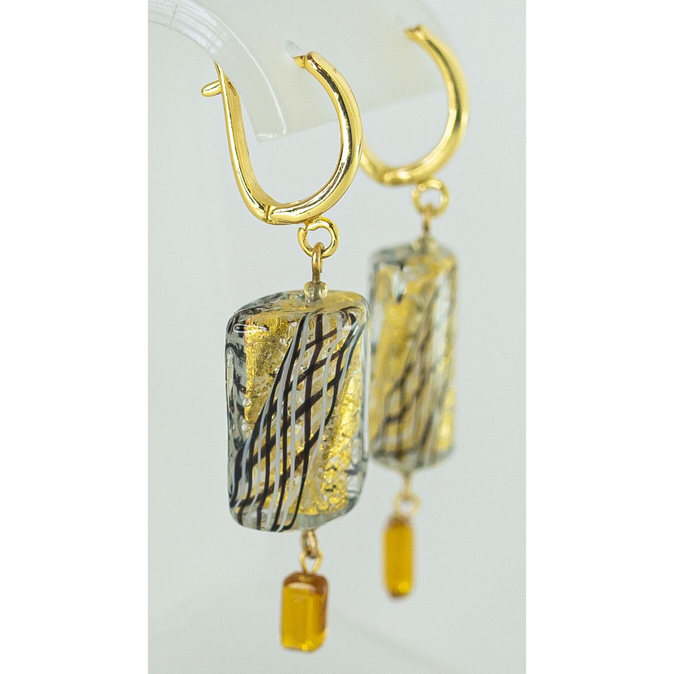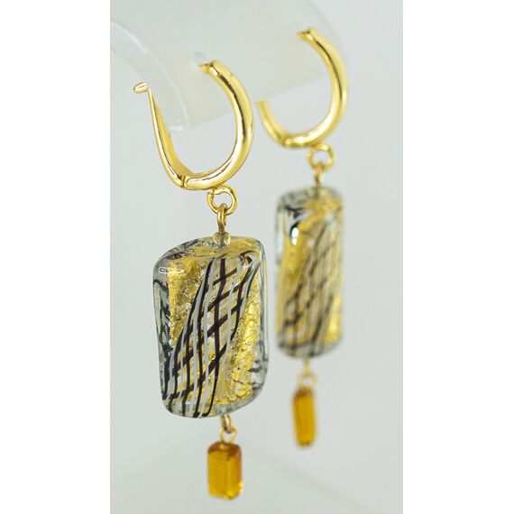 Серьги женские из гипоаллергенного ювелирного сплава желтого цвета. Вставка- Муранское стекло, цвет- желтый. Высота серег- 4,0см, ширина-2,0см. Замок- английский (штифт-1,0см).