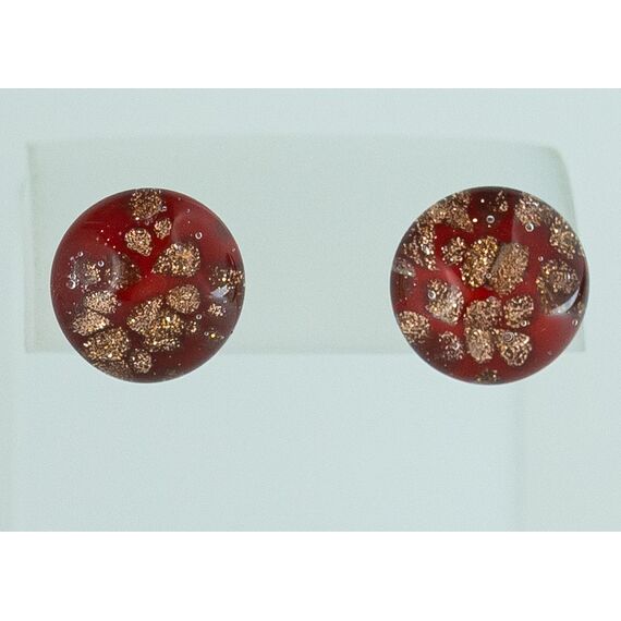 Серьги женские из Муранского стекла, цвет-красный, золотой. Высота и ширина серег- 1,0см. Застежка из гипоаллергенного ювелирного сплава серого цвета- пусет.