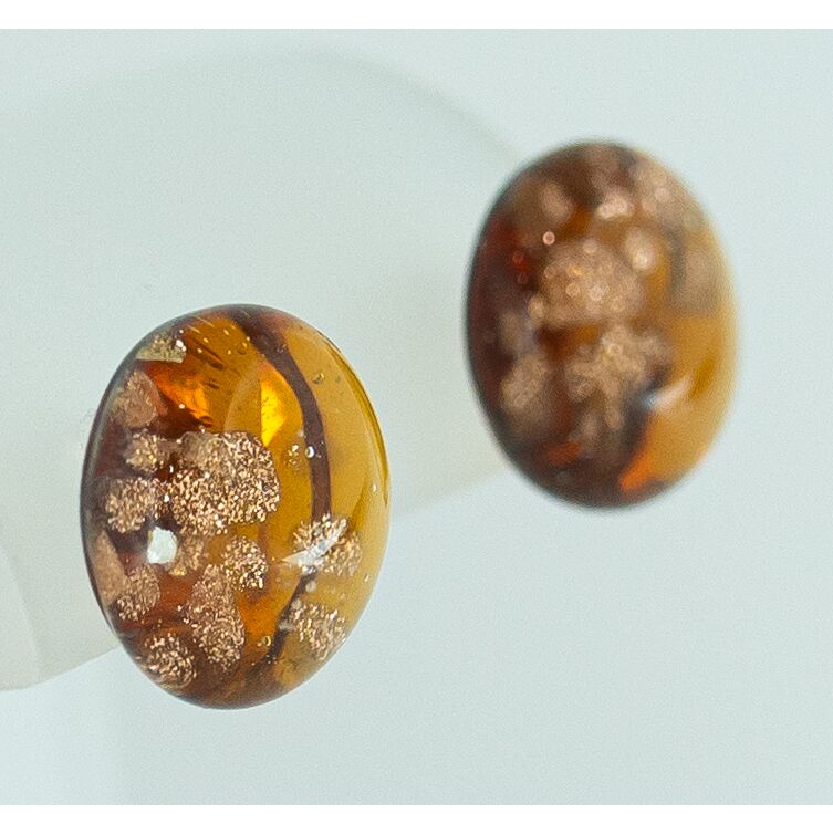 Серьги женские из Муранского стекла, цвет-коричневый. Высота и ширина серег- 1,0см. Застежка из гипоаллергенного ювелирного сплава серого цвета- пусет.