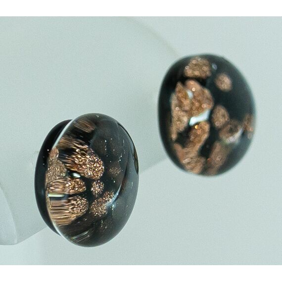 Серьги женские из Муранского стекла, цвет-черный, золотой. Высота и ширина серег- 1,0см. Застежка из гипоаллергенного ювелирного сплава серого цвета- пусет.