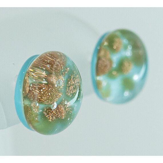 Серьги женские из Муранского стекла, цвет-желтый, голубой. Высота и ширина серег- 1,0см. Застежка из гипоаллергенного ювелирного сплава серого цвета- пусет.