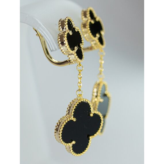 Серьги женские из высококачественного гипоаллергенного ювелирного сплава желтого цвета с покрытием эмалью черного цвета. Высота серег-5,0см, ширина-1,5см. Английский замок ( штифт-1,0см).