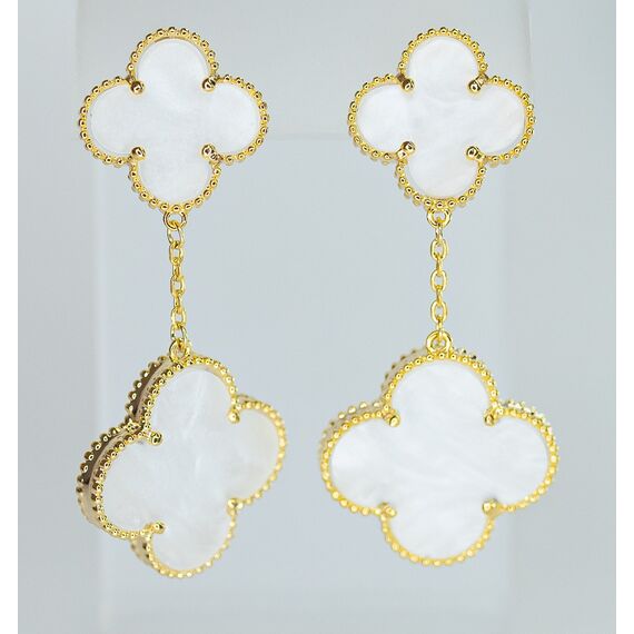 Серьги женские из высококачественного гипоаллергенного ювелирного сплава желтого цвета с покрытием перламутром белого цвета. Высота серег-5,0см, ширина-1,5см. Английский замок ( штифт-1,0см).
