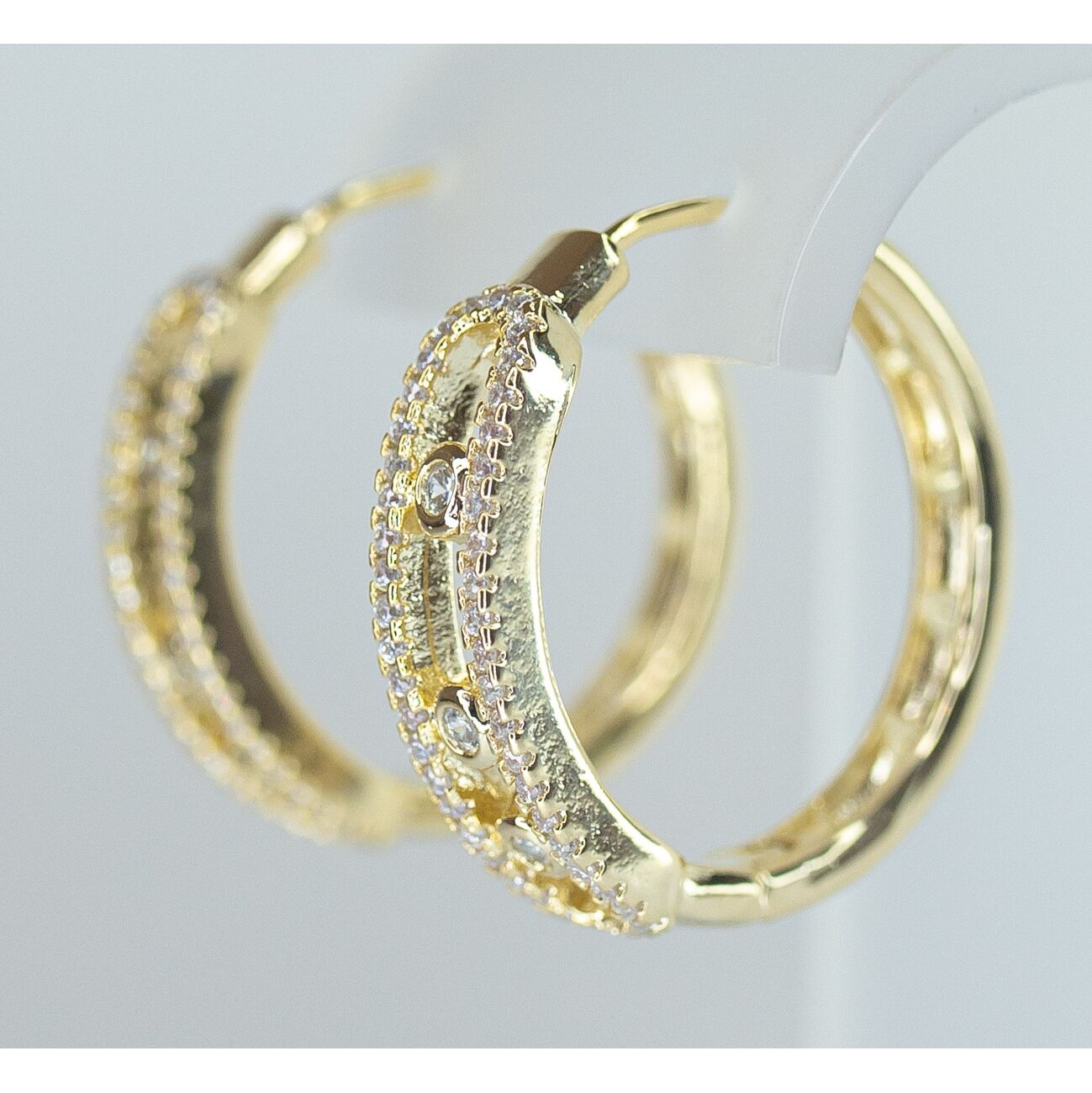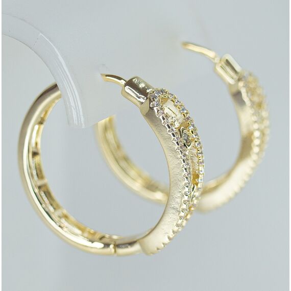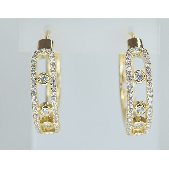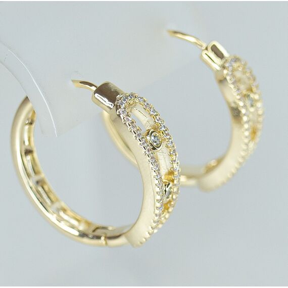 Серьги женские из высококачественного гипоаллергенного ювелирного сплава желтого цвета. Вставка- циркон белого цвета. Высота серег-2,5см, ширина-0,6см. Застежка-конго.