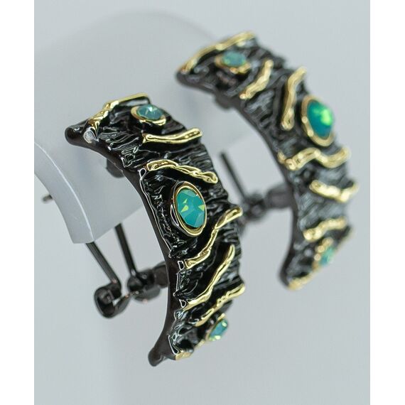 Серьги женские из гипоаллергенного ювелирного сплава черного и серого цвета. Вставка- кварц зеленого цвета. Высота серег-3,0см, ширина-1,5см. Итальянский замок ( штифт-1,2см и застежка- клипса).
