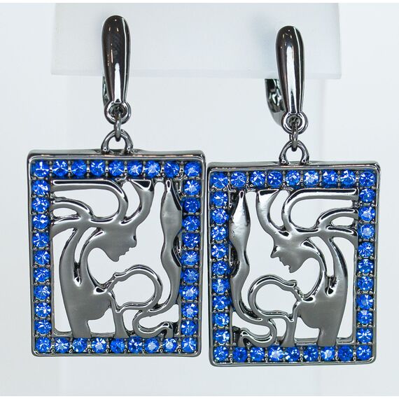 Серьги женские из гипоаллергенного ювелирного сплава черного цвета. Вставка- кварц синего цвета. Высота серег-3,0см, ширина-2,5см. Английский замок ( штифт-1,0см).