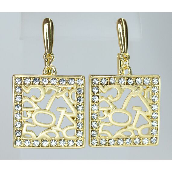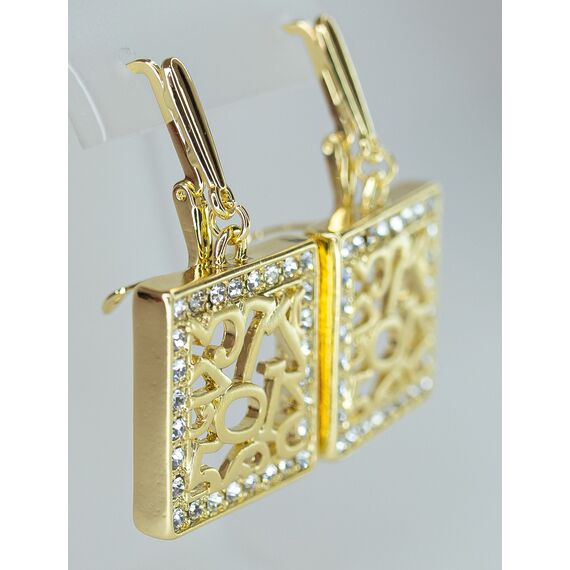 Серьги женские из гипоаллергенного ювелирного сплава желтого цвета. Вставка- циркон белого цвета. Высота серег-4,0см, ширина-3,0см. Английский замок (штифт-1,0см).