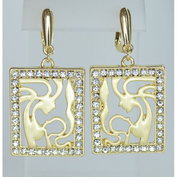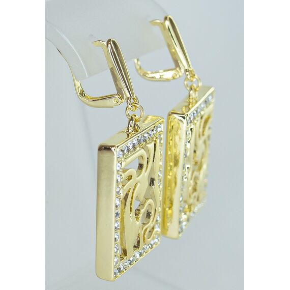 Серьги женские из гипоаллергенного ювелирного сплава желтого цвета. Вставка- циркон белого цвета. Высота серег-4,0см, ширина-3,0см. Английский замок (штифт-1,0см).