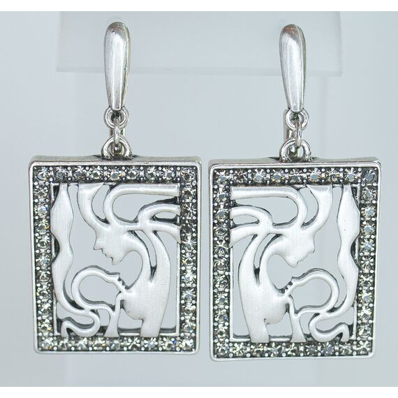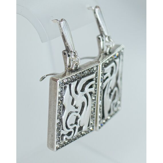 Серьги женские из гипоаллергенного ювелирного сплава серого цвета. Вставка- циркон белого цвета. Высота серег-3,5см, ширина-2,5см. Английский замок (штифт-1,0см).