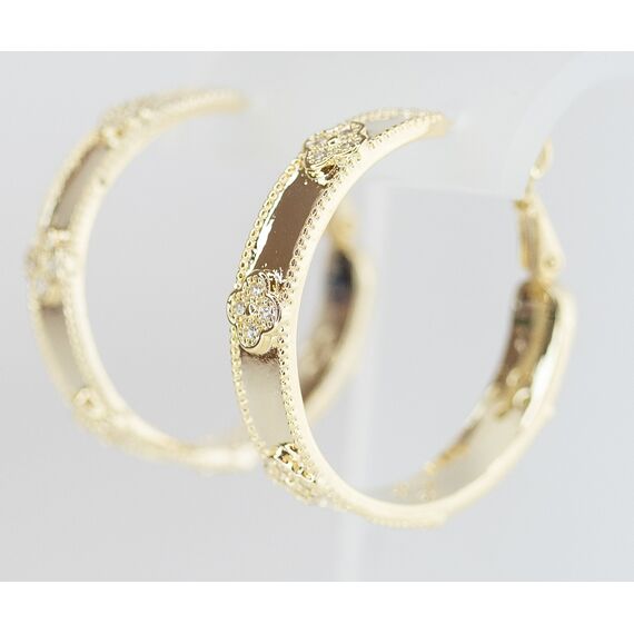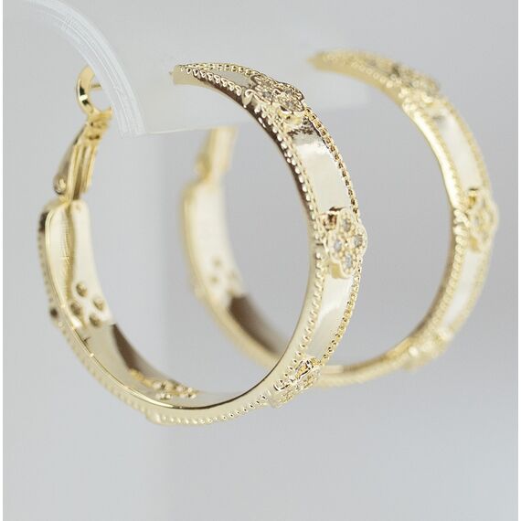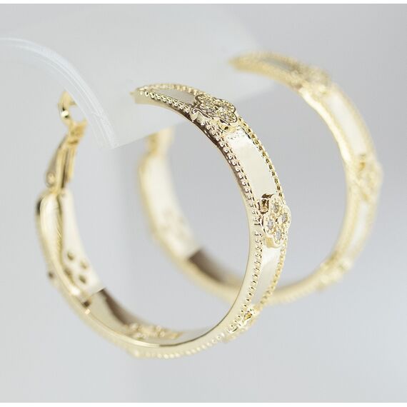 Серьги женские из высококачественного гипоаллергенного ювелирного сплава желтого цвета. Вставка- циркон белого цвета. Высота серег-3,0см, ширина-1,0см. Застежка- итальянская ( штифт-1,02см и клипса).