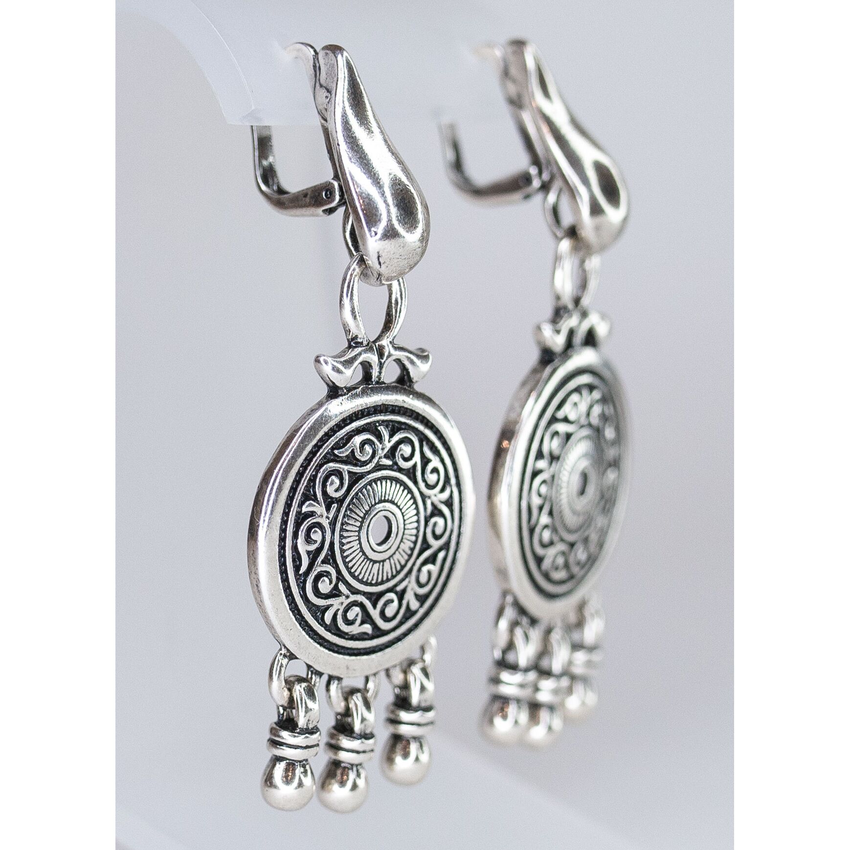 Серьги женские из гипоаллергенного ювелирного сплава серого и черного цвета. Без вставок. Высота серег-6,0см, ширина-2,5см. Английский замок (штифт-1,0см).