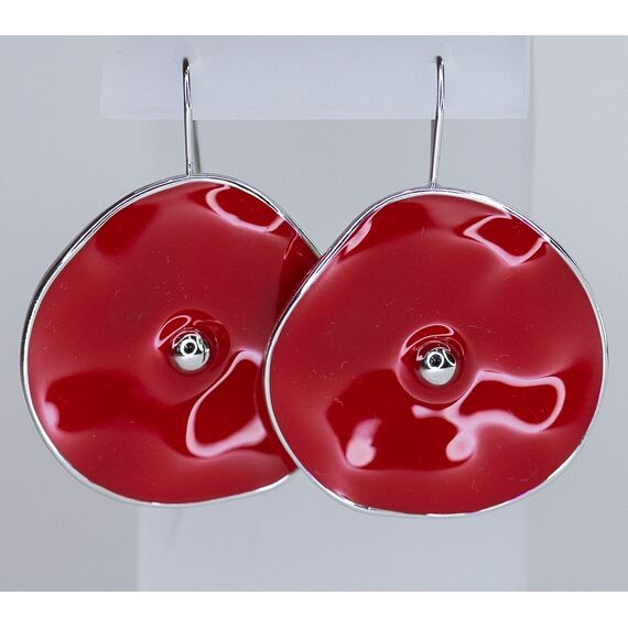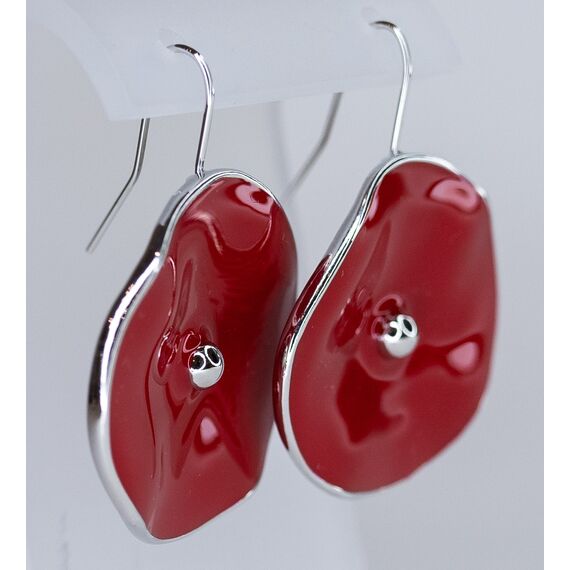Серьги женские из гипоаллергенного ювелирного сплава серого цвета с покрытием эмалью красного цвета. Без вставок. Высота серег- 4,5см, ширина- 3,0см. Застежка- петля.