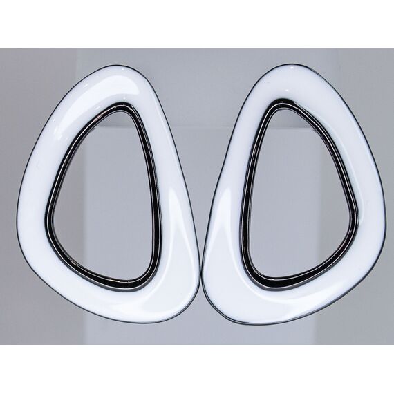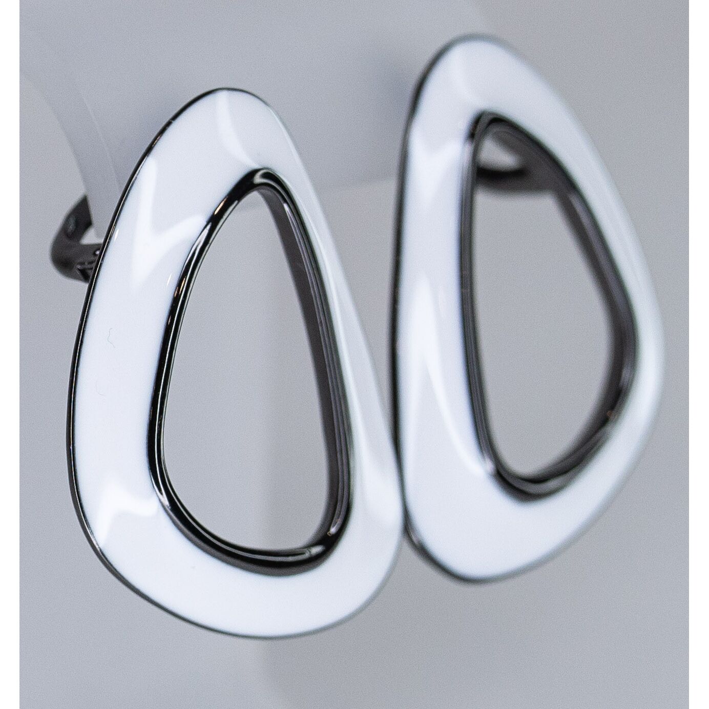 Серьги женские из гипоаллергенного ювелирного сплава черного цвета с покрытием эмалью белого цвета. Без вставок. Высота серег-3,0см, ширина-2,5см. Итальянский замок ( штифт-1,2см и застежка -клипса).