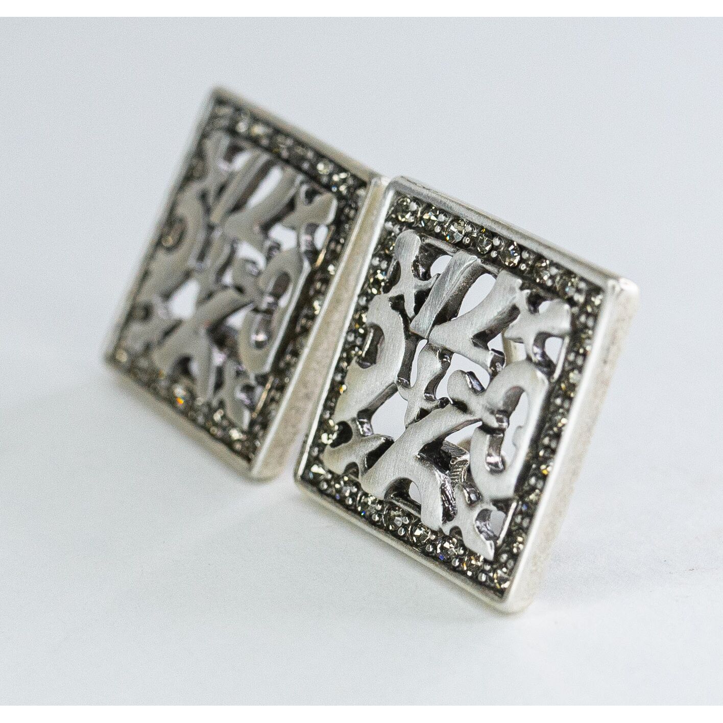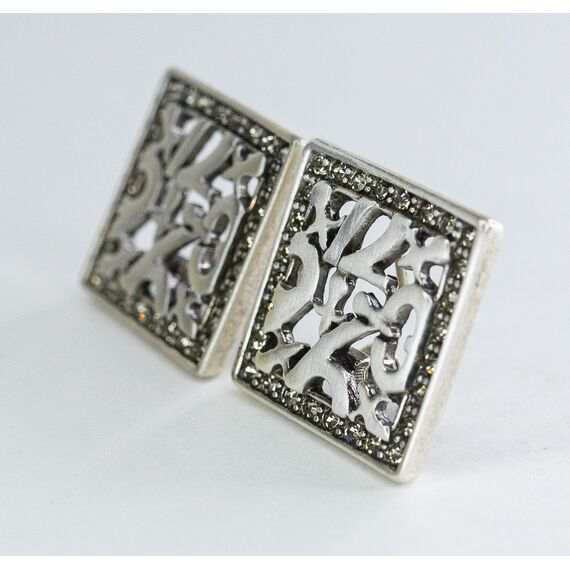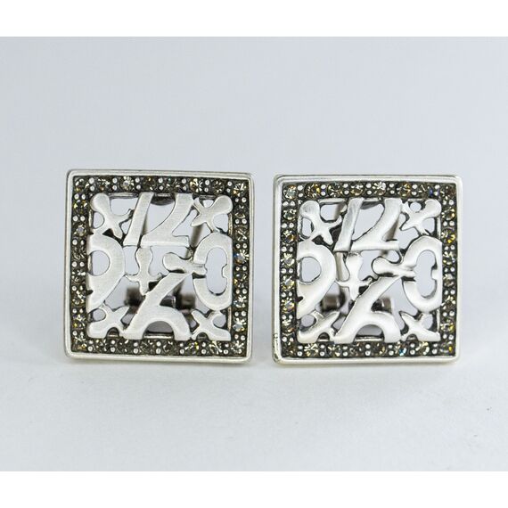 Серьги женские из гипоаллергенного ювелирного сплава серого цвета. Вставка- циркон, цвет- белый. Высота серег-- 2,5см, ширина-2,5см. Итальянский замок ( штифт-1,02см и клипса).
