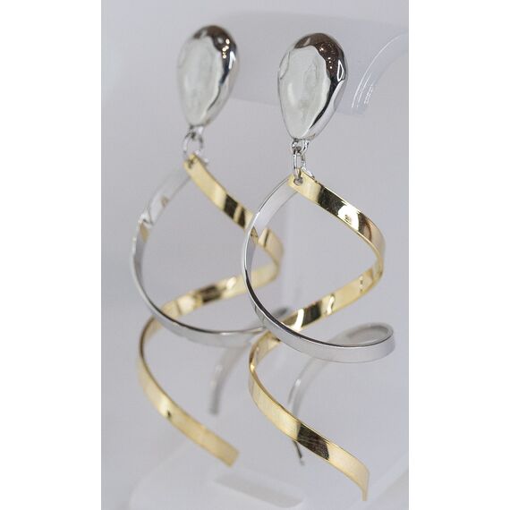 Серьги женские из гипоаллергенного ювелирного сплава желтого и серого цвета. Высота серег- 7,0см, ширина- 1,0см. Застежка- пусет.