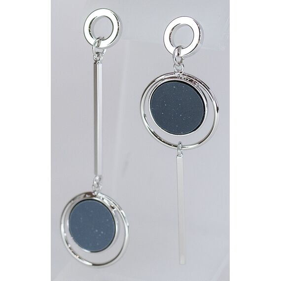 Серьги женские непарные из гипоаллергенного ювелирного сплава серого цвета с покрытием эмалью черного цвета. Высота серег- 5,0см, ширина- 1,5см. Застежка- пусет.
