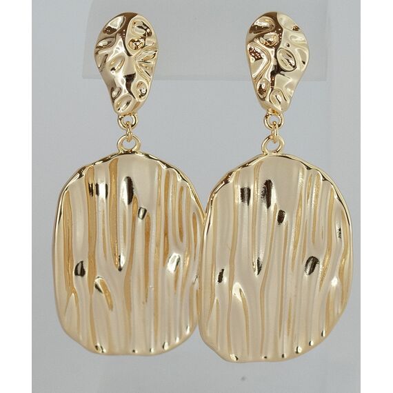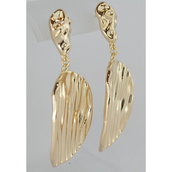 Серьги женские из гипоаллергенного ювелирного сплава желтого цвета. Без вставок. Высота серег- 5,0см, ширина- 2,5см. Застежка- английская ( штифт-1,0см).