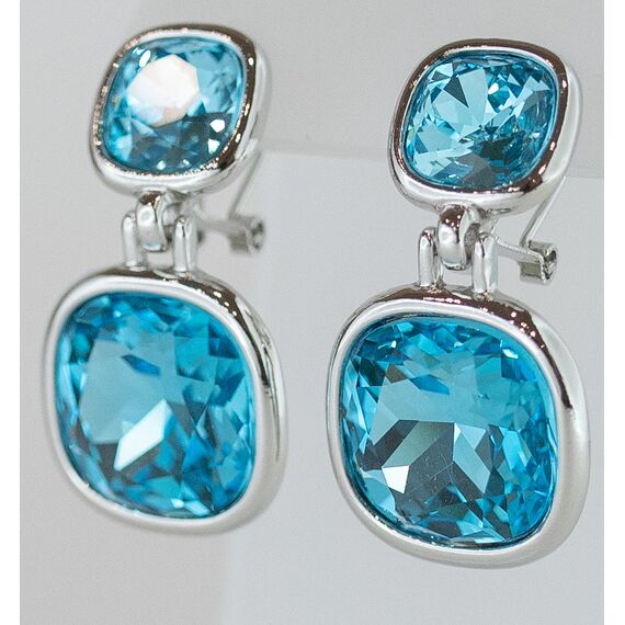Серьги женские из гипоаллергенного ювелирного сплава серого цвета со вставкой из кварца, цвет- голубой. Высота серег- 3,0см, ширина-1,5см. Итальянский замок ( штифт-1,2см и клипса).