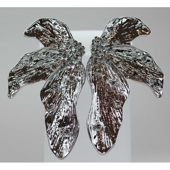 Серьги женские из гипоаллергенного ювелирного сплава серого цвета. Без вставок. Высота серег- 6,0см, ширина-3,0см. Итальянский замок ( штифт-1,2см и клипса).