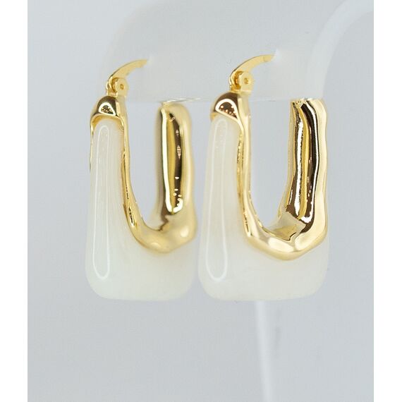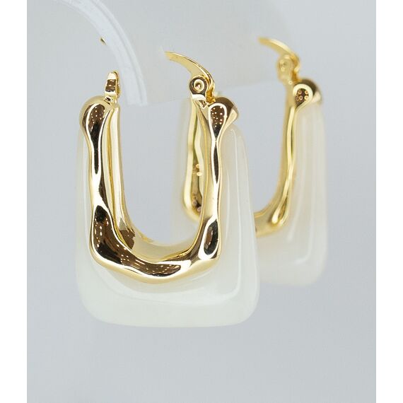 Серьги женские из гипоаллергенного ювелирного сплава желтого цвета. Вставка- ювелирная смола, цвет- слоновая кость. Высота серег-3,0см, замок- булавка.