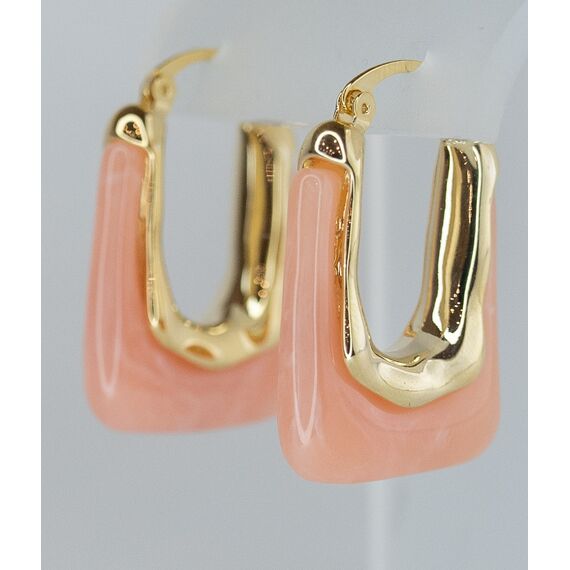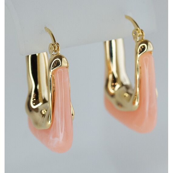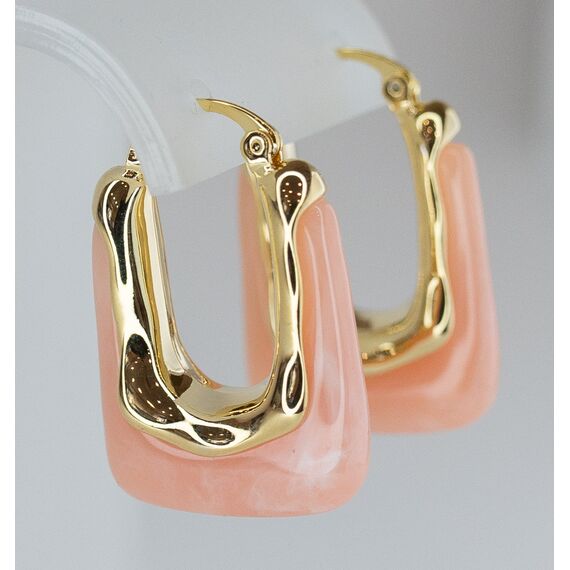 Серьги женские из гипоаллергенного ювелирного сплава желтого цвета. Вставка- ювелирная смола розового цвета. Высота серег-3,0см, замок- булавка.