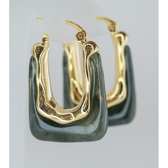 Серьги женские из гипоаллергенного ювелирного сплава желтого цвета. Вставка- ювелирная смола темно-серого цвета. Высота серег-3,0см, замок- булавка.