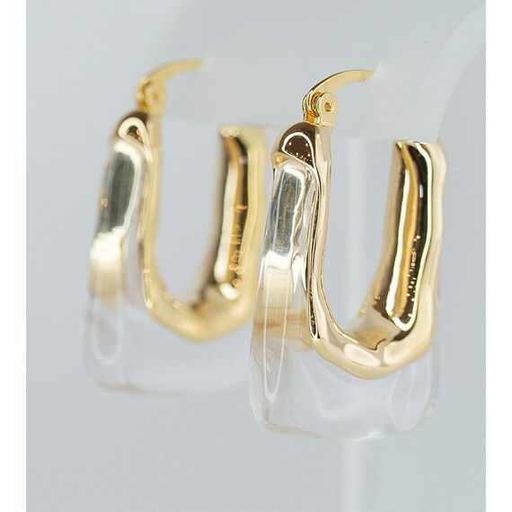 Серьги женские из гипоаллергенного ювелирного сплава желтого цвета. Вставка- ювелирная смола белого цвета. Высота серег-3,0см, замок- булавка.