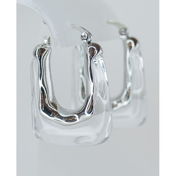 Серьги женские из гипоаллергенного ювелирного сплава серого цвета. Вставка- ювелирная смола белого цвета. Высота серег-3,0см, замок- булавка.