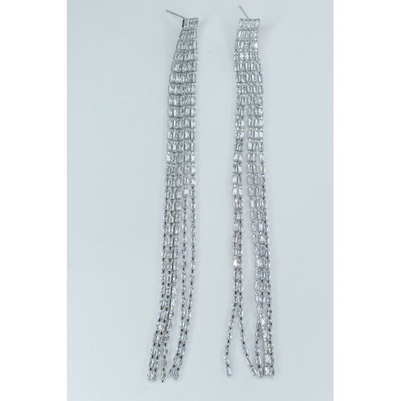 Серьги женские из гипоаллергенного ювелирного сплава серого цвета. Вставка- циркон белого цвета. Высота серег-12,0см, ширина-0,5см. Замок- пусет.