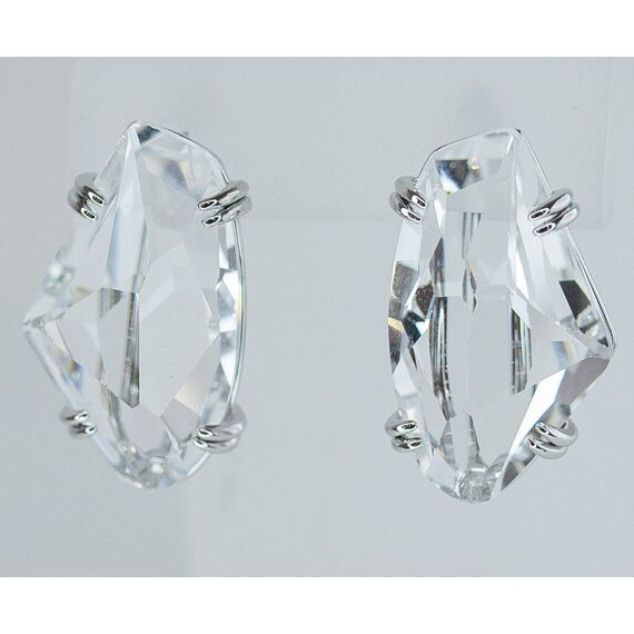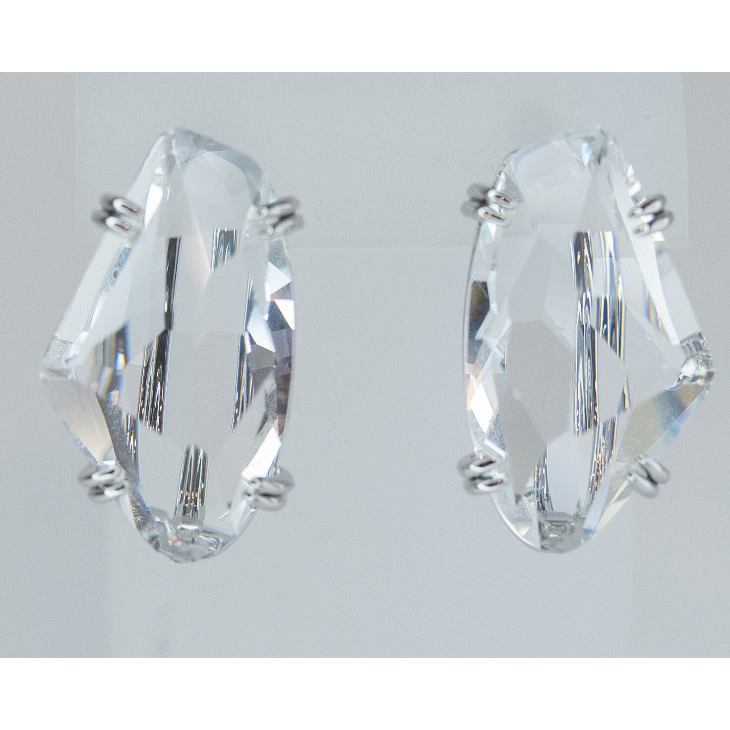 Серьги женские из гипоаллергенного ювелирного сплава серого цвета. Вставка- кварц белого цвета. Высота серег-3,0см, ширина-2,0см. Замок- английский ( штифт-1,0см).