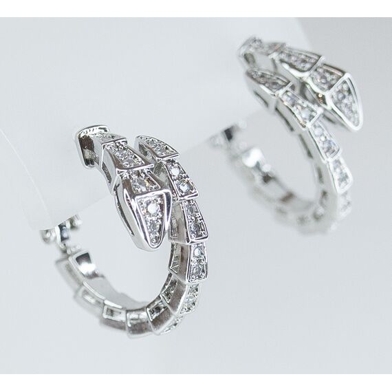 Серьги женские из гипоаллергенного ювелирного сплава серого цвета. Вставка- циркон белого цвета. Высота серег- 2,0см, ширина- 2,0см. Застежка- пусет.