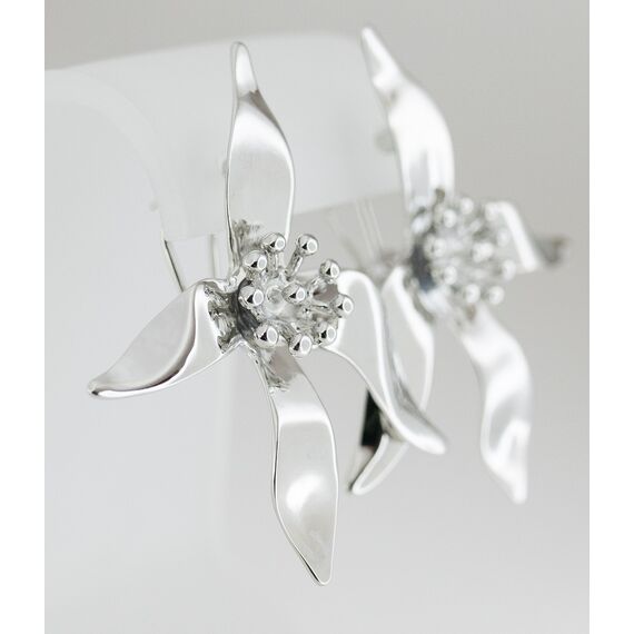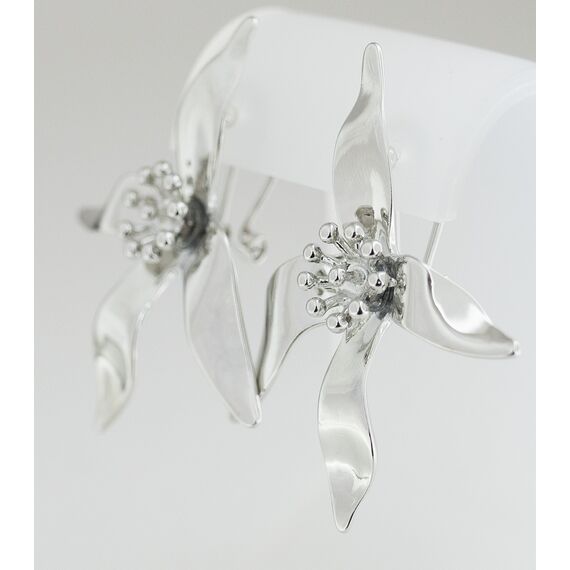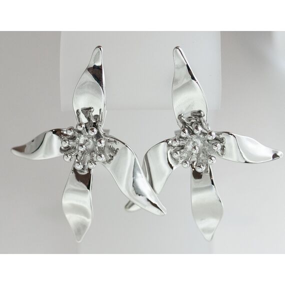 Серьги женские из гипоаллергенного ювелирного сплава серого цвета. Без вставок. Высота серег- 4,0см, ширина-3,5см. Замок у серег - пусет.