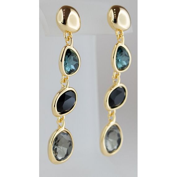 Серьги женские из гипоаллергенного ювелирного сплава желтого цвета . Вставка- кварц, цвет- черный, серый, лондон блю. Высота серег- 5,0см, ширина- 1,0см. Застежка- пусет.
