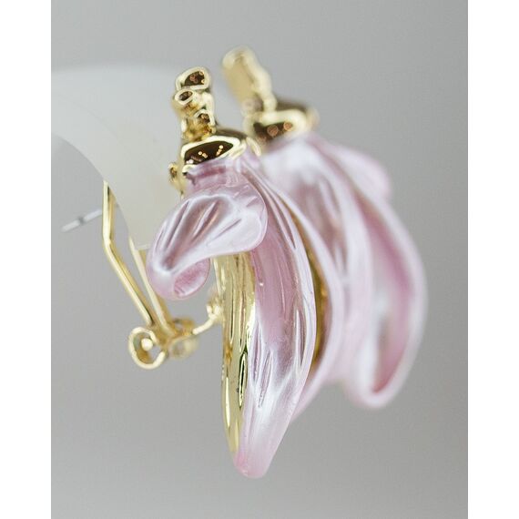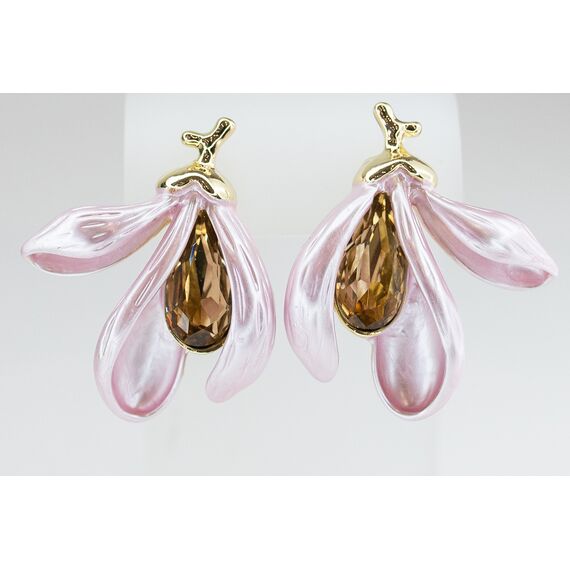 Серьги женские из гипоаллергенного ювелирного сплава желтого цвета с покрытием перламутром сиреневого цвета. Вставка- кварц коньячного цвета. Высота серег- 3,0см, ширина- 3,0см. Застежка- пусет.