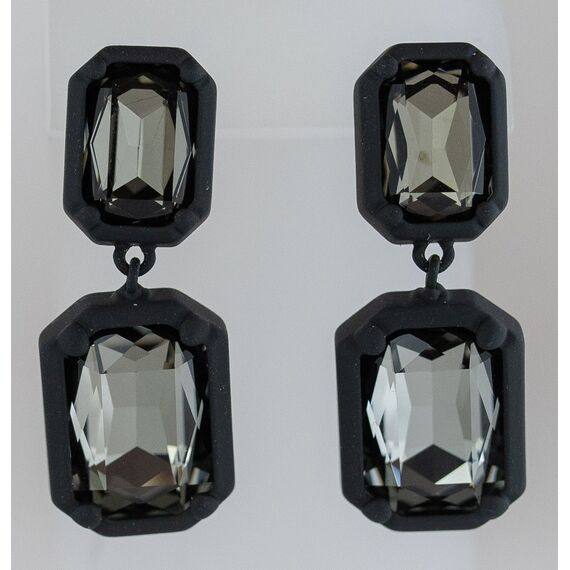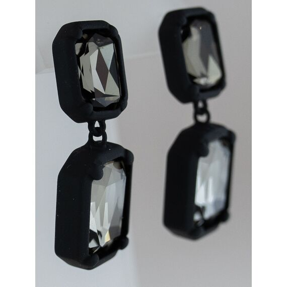 Серьги женские из гипоаллергенного ювелирного сплава и пластика черного цвета. Вставка- ювелирное стекло серого цвета. Высота серег- 4,0см, ширина- 2,0см. Застежка- пусет.