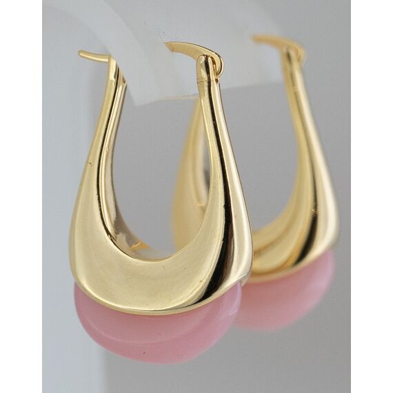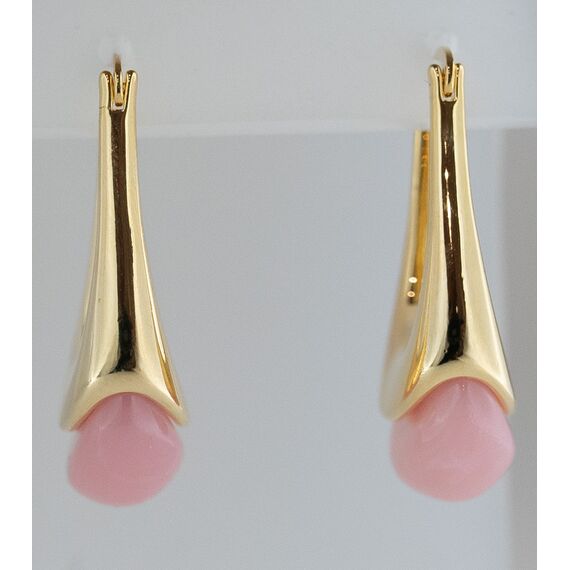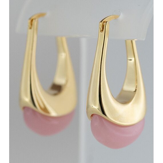 Серьги женские из гипоаллергенного ювелирного сплава желтого цвета. Вставка- улексит розового цвета. Высота серег- 4,0см, ширина-1,0см. Застежка- булавка.