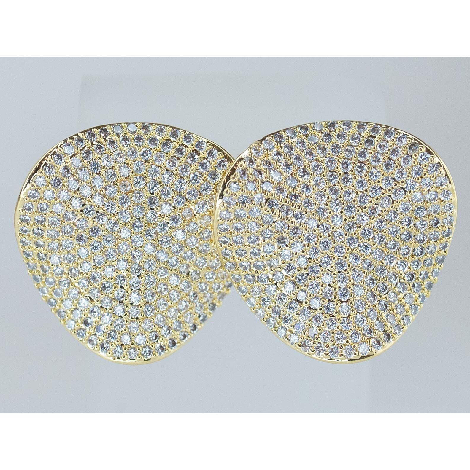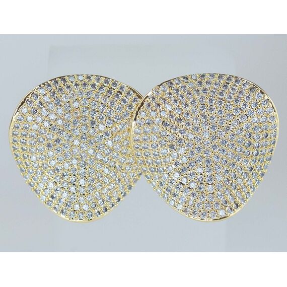 Серьги женские из гипоаллергенного ювелирного сплава желтого цвета. Вставка- цирконы бюелого цвета. Высота серег- 3,0см, ширина- 3,0см. Застежка- пусет.