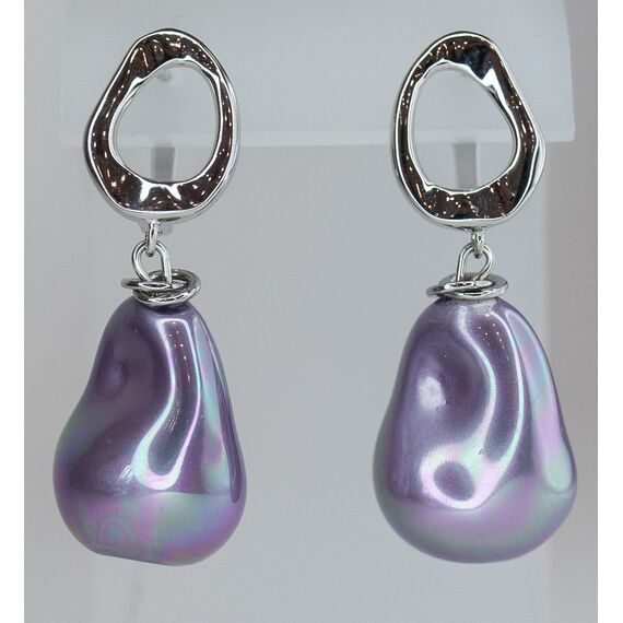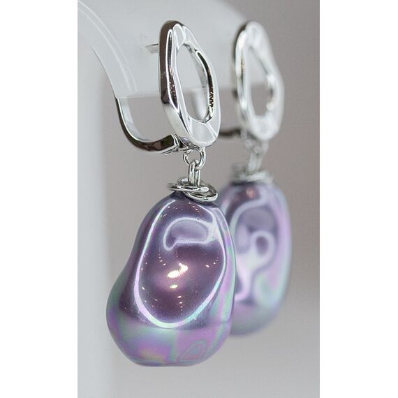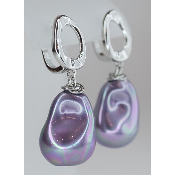 Серьги женские из гипоаллергенного ювелирного сплава серого цвета. Вставка- барочная майорка сиреневого цвета. Высота серег--4,0см, ширина-1,5см. Английский замок (штифт- 1,0см).