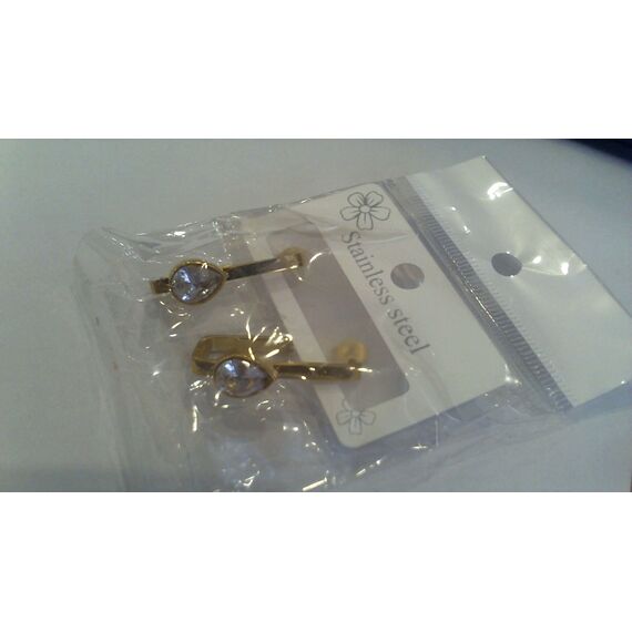 Серьги женские из гипоаллергенного ювелирного сплава желтого цвета. Вставка- ювелирное стекло белого цвета. Высота серег- 2,0см, ширина- 0,5см. Замок- пусет.
