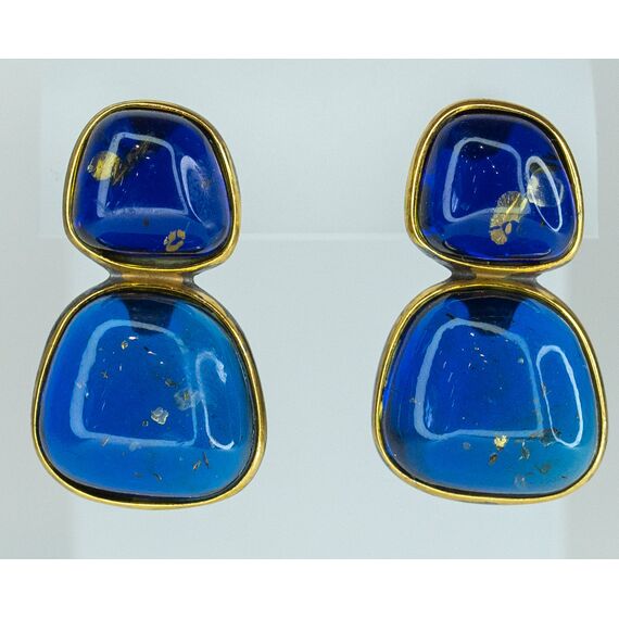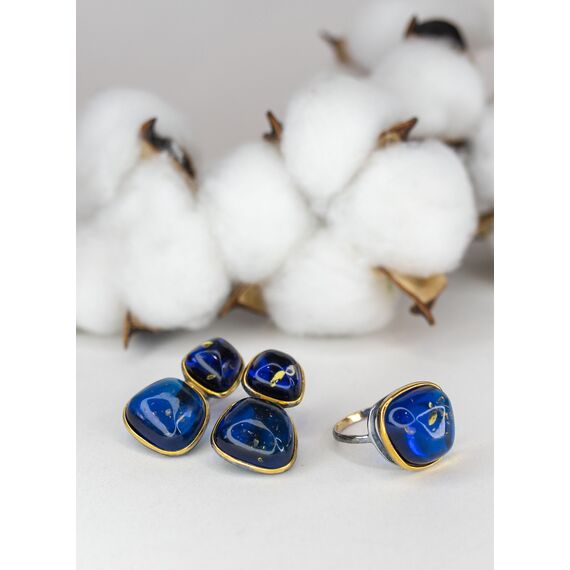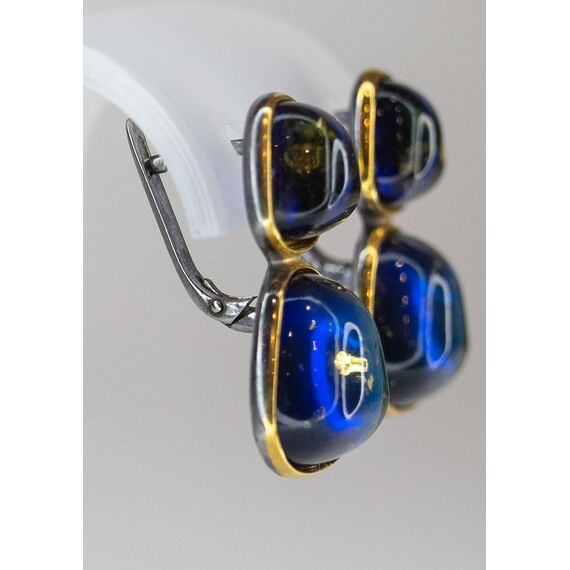 Серьги женские из гипоаллергенной бронзы с позолотой. Вставка- нат.янтарь синего цвета ( размер камня- 0,5/0,5см и 1,0/1,5см). Высота серег- 2,5см, ширина-1,5см. Застежка- английская (штифт-1,0см).