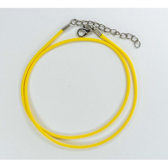 Шнурок из прорезиненного текстиля желтого цвета, длина-45,0+5см. Замок- карабин из ювелирного сплава серого цвета.